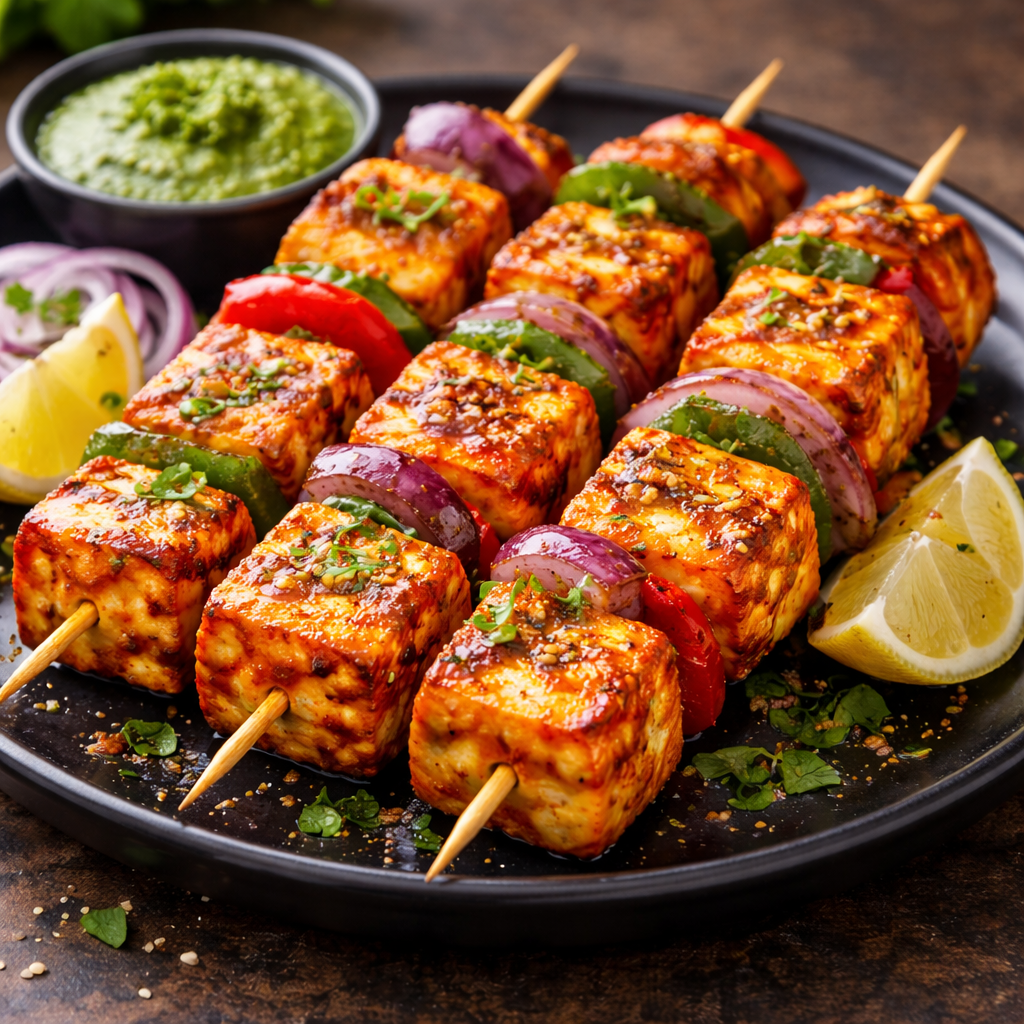 Paneer Tikka is a popular Indian appetizer made with soft paneer cubes marinated in spiced yogurt and grilled to perfection. Cooked with onions and capsicum, it has a smoky, charred flavor. Served hot with mint chutney and lemon, it’s flavorful, aromatic, and irresistibly delicious.